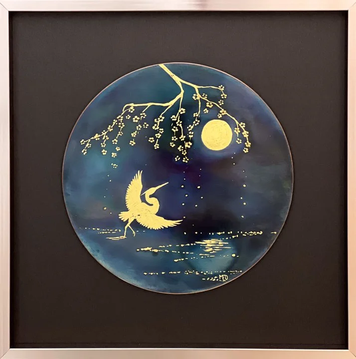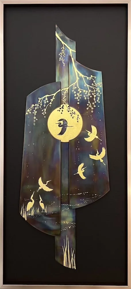 Metalsmith Mary Ellen O’Connor makes unique works in 24k gold on polished copper. Following her passion for animals, nature, and wildlife her works exude a calm elegance influenced by Asian design and esthetics.