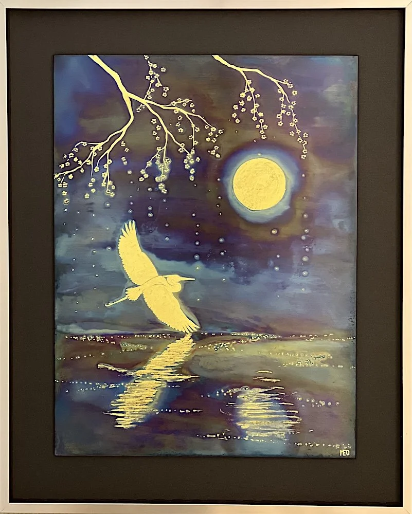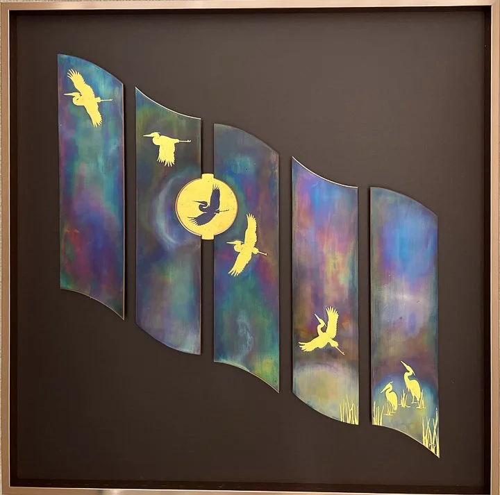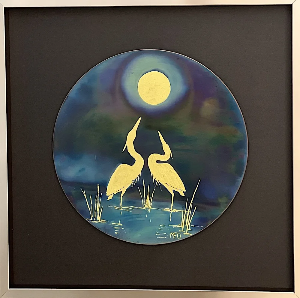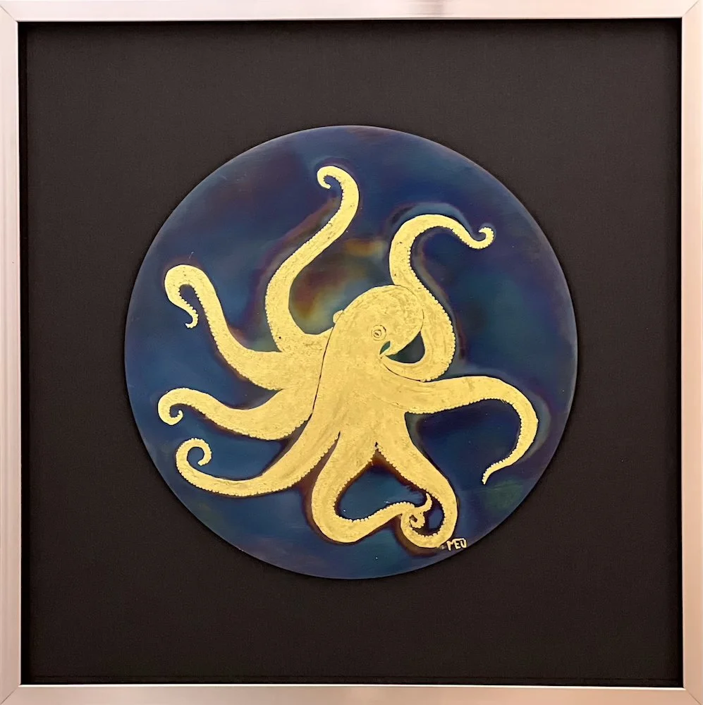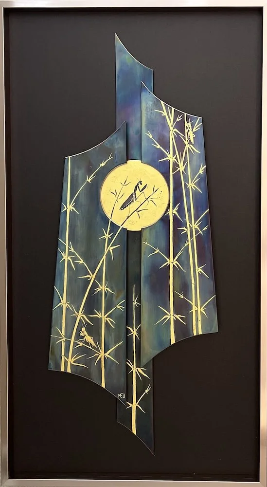 Metalsmith Mary Ellen O’Connor makes unique works in 24k gold on polished copper. Following her passion for animals, nature, and wildlife her works exude a calm elegance influenced by Asian design and esthetics.